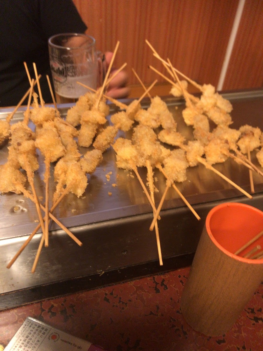 Among the standout dishes at Yakitori No Meimon Akiyoshi Tsurumai, the ねぎまと純けい (Negima and Junkei) holds a special place. The tender pieces of chicken are perfectly grilled and paired with green onions, offering a savory taste with each bite. Another fan favorite is the ししとう (Shishito peppers), which are grilled to perfection and make for an excellent, slightly spicy side dish. For those looking to try something crispy, the 串カツ (Kushikatsu) will be a hit. This deep-fried skewer of pork, vegetables, and other ingredients is crunchy on the outside and juicy on the inside.